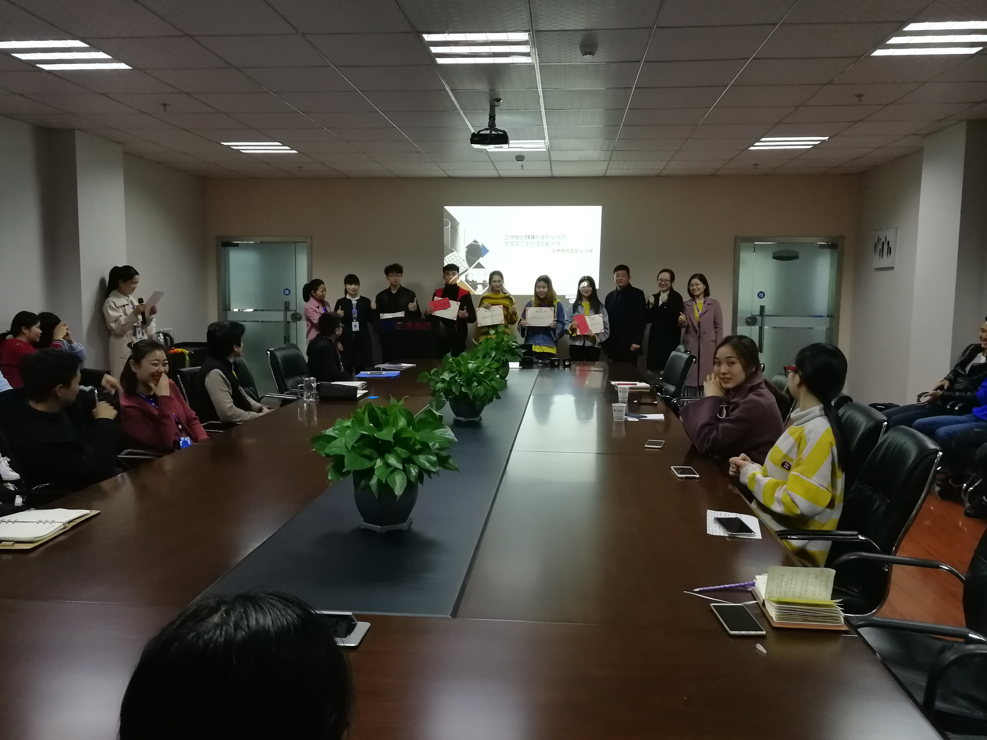2018年11月16日,来自新华学院电子商务专业的实习生们为期一个月的实习生活已临近尾声,在实习工作结束之际,我们特邀新华学院各领导与正德集团领导相聚在正德集团总部六楼,召开了实习生工作总结与表彰大会。
