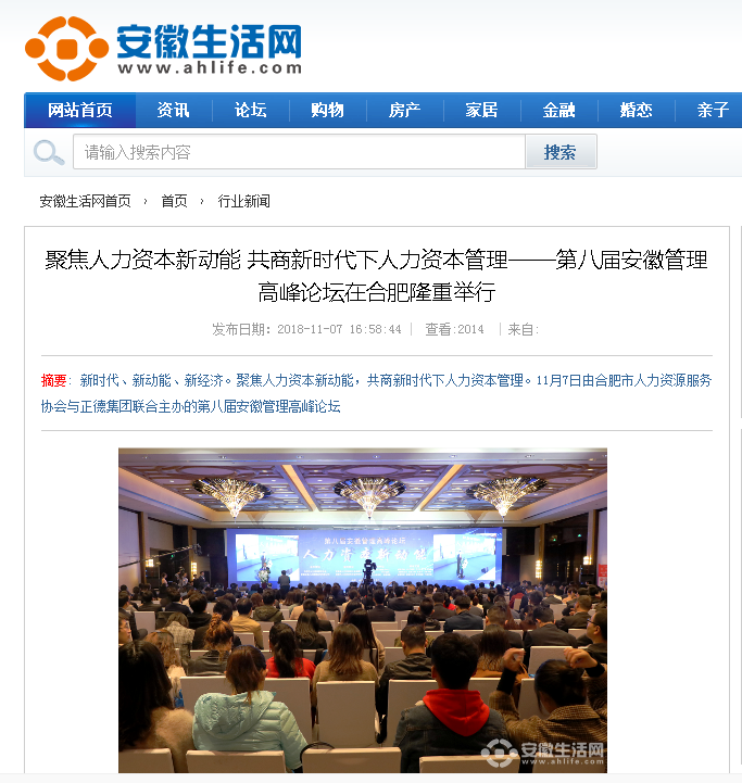 新时代、新动能、新经济。聚焦人力资本新动能,共商新时代下人力资本管理。11月7日由合肥市人力资源服务协会与安徽正德人力资源咨询有限公司联合主办的第八届安徽管理高峰论坛在中国合肥皇冠假日酒店隆重举行。