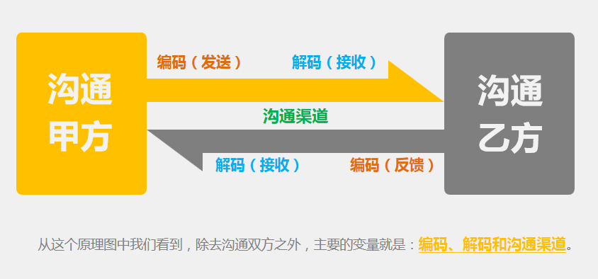 其实沟通的过程就是编码和解码的过程,沟通人组织语言发送编码,接收人接受语言解读编码,通过合适的沟通渠道产生多次沟通达到目的!
