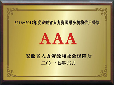 安徽省人资资源机构信用等级AAA2017