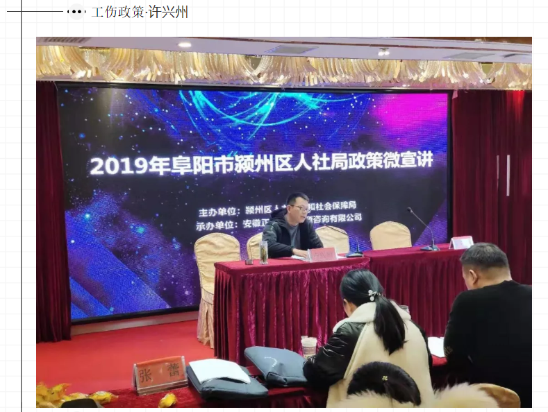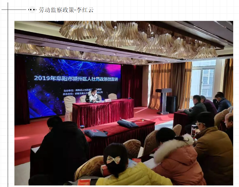2019年12月11日上午阜阳市颍州区人社局政策微宣讲在阜阳華致大酒店正式开班。本次宣讲会共有来自各个单位的百余名代表,由安徽正德人力资源咨询有限公司承办。