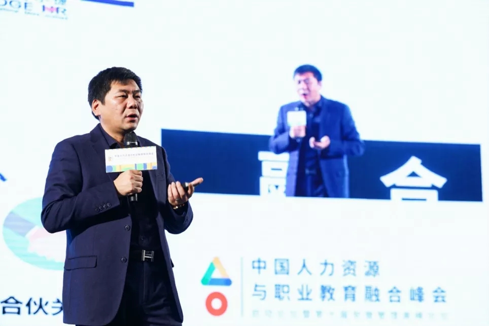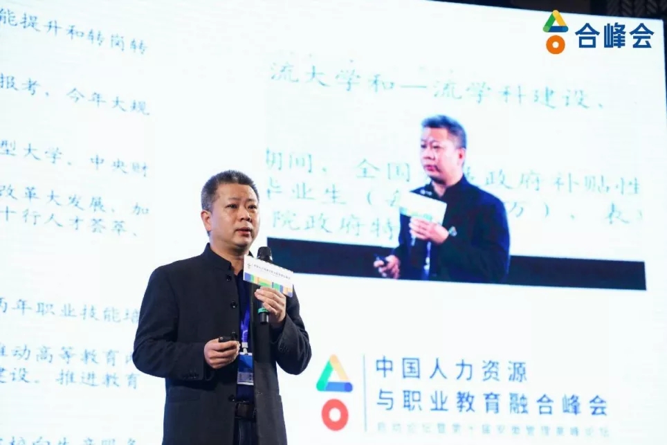 合肥市人力资源服务协会会长,正德人力董事长管政博士,做了《人力资源与职业教育:同一赛道下协同并进》的主题演讲,首先从统领全局的高度,抛砖引玉式的引起参会者的强烈反响与共鸣。