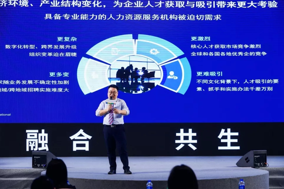 由首家A股上市人力资源企业科锐国际总经理杨武全先生做了《深度融合、同频共振》的主旨演讲,深入浅出的提出了融合发展的新思路以及如何破局协同发展。