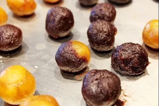 将包好的面团揉搓成圆球状,包裹上熟面粉以免粘黏模具,用模具轻轻按压两次就完成啦。