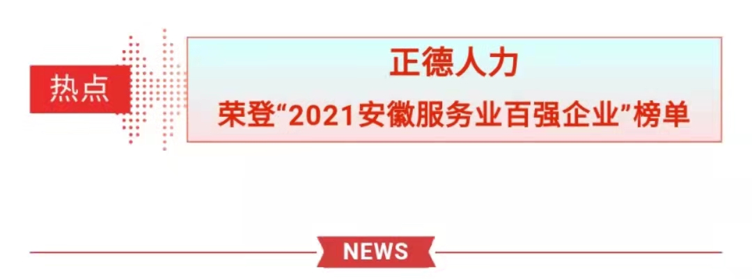 喜报!正德人力 荣登“2021安徽服务业百强企业”榜单