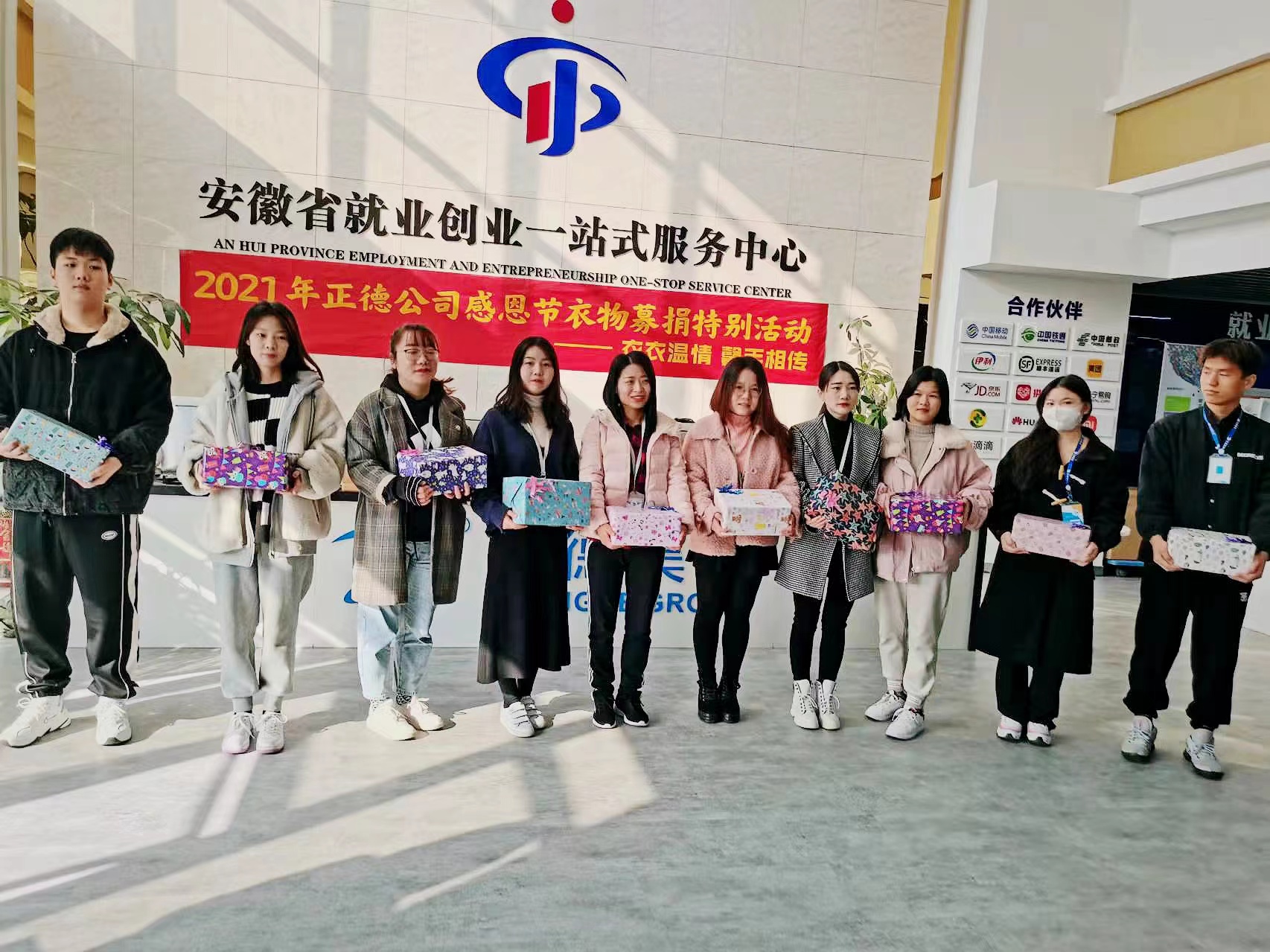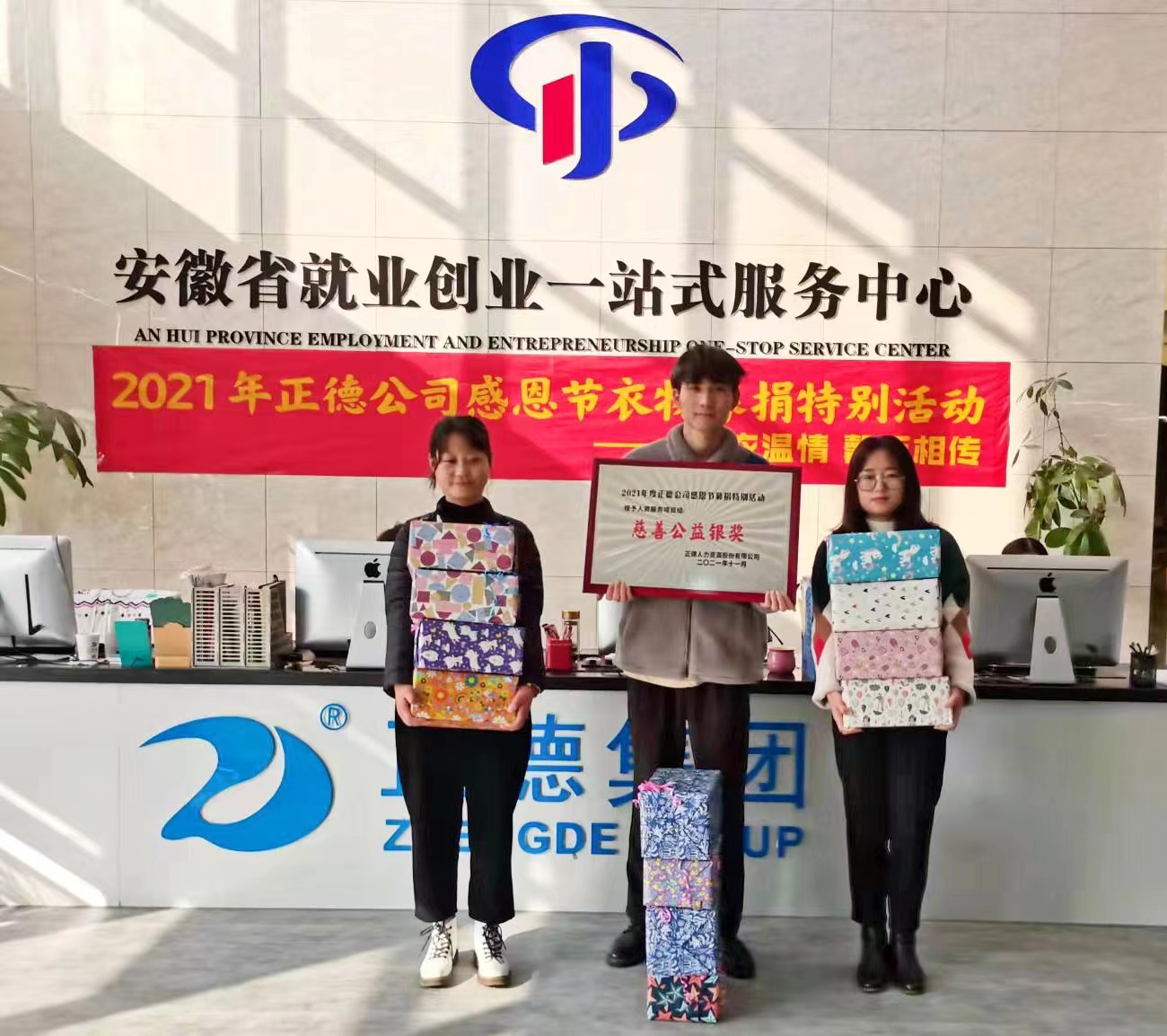 在11月24日—26日举办的“衣衣温情,馨手相传”公益活动中,正德人力资源股份有限公司合肥服务总部共募集到180余公斤的物资,这份沉甸甸的爱心现在已成功传递到受捐地区同胞的手中。
