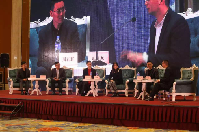 开放式对话环节由企业家陈玉婉主持,蓝冠股份有限公司董事长王晓华、安徽果儿金融信息服务有限公司CEO梁昌海、安徽一拓通信科技集团股份有限公司CEO武明根、宝贝德教育滨湖校区校长周君君、正德集团董事长管政等参与对话。