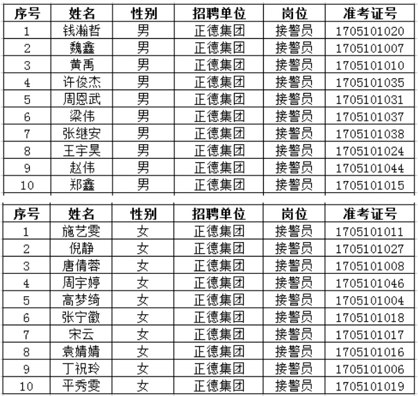 正德集团派遣至合肥市公安局110接警服务台工作人员拟录聘人员公示