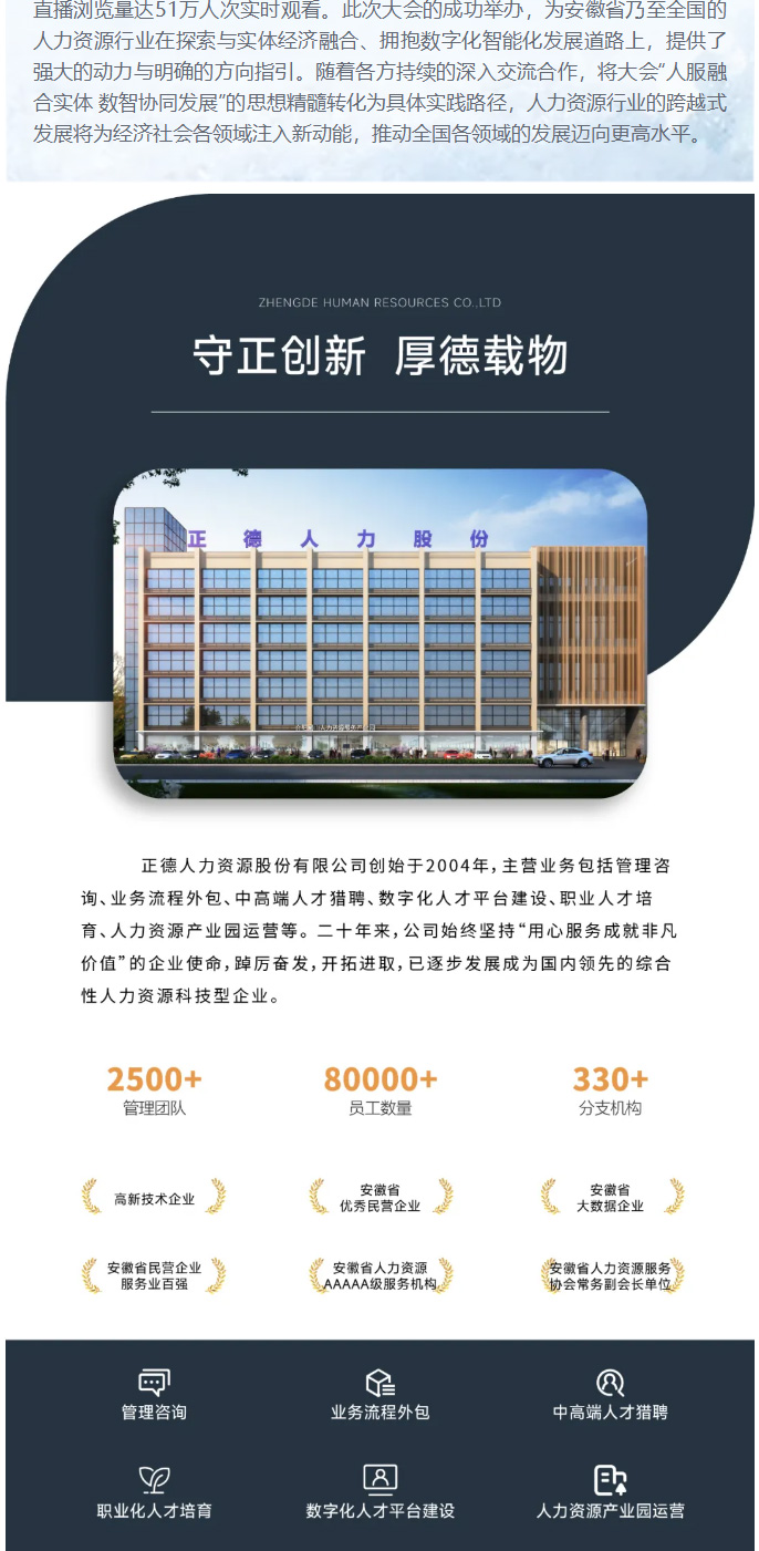 喜报!正德人力股份荣获“安徽省优秀民营企业”称号